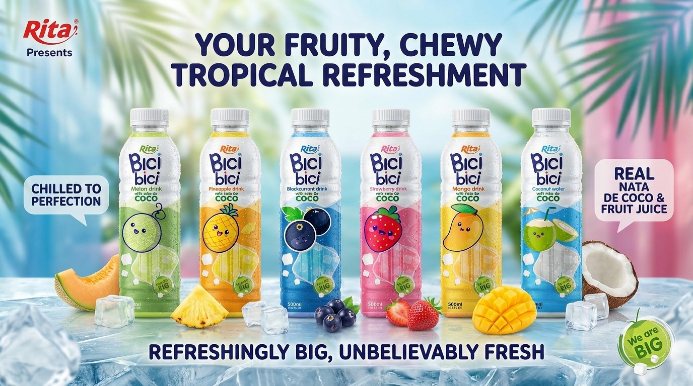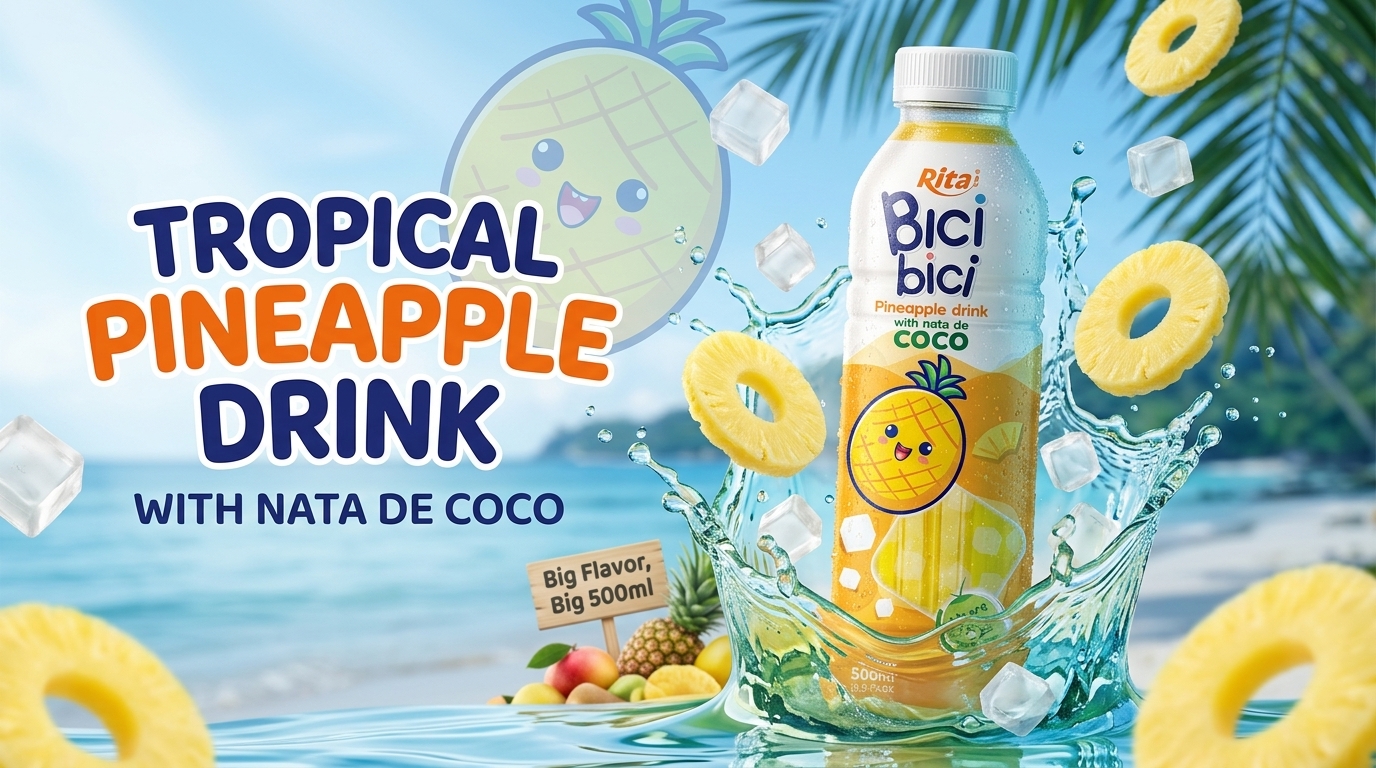 In a crowded marketplace, clear positioning is essential. A tropical pineapple drink with nata de coco naturally positions itself in the premium RTD segment. Its differentiation lies in the textural experience, the authenticity of the tropical flavor, and the visual clarity with distinct nata de coco pieces.